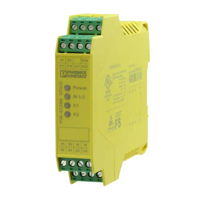 This is manufactured by Phoenix Contact. The manufacturer part number is 2901422. It performs basic function of safety switch/interlock. The product psr-scp-120uc/esam4/3x1/1x2/b, is a highly preferred choice for users. Its accurate length is 99mm. Furthermore, the product is 22.5mm wide. The product comes in 114.5mm depth. It is supplied with 2 channels. The terminal is a cage clamp type. It is assigned with possible HTSUS value of 8536.49.0050. The product is rohs compliant. The coil voltage of the product is 120vac/dc. Moreover, it has screw terminal terminal style. The product has -25°c ~ 55°c operating temperature range. It holds up to 3.16 kohms coil resistance. It has a coil current of 38 ma. The product's switching voltage is 250vac, 250vdc - max. Robust coil power of 4.56w. It is shipped in bulk. It also has a 4pst-3no/1nc (3 form a, 1 form b) contact form. Its typical moisture sensitivity level is 1 (unlimited). The operating time of the product is 40 ms. It has a contact current rating of 6 a. The splendid features of the product include lighted indicator. The product is available in din rail configuration. The product psr, is a highly preferred choice for users. While 60 ms is its release time. The product is designated with the ear99 code number The product is made from sturdy silver tin oxide (agsno), gold (au) materials.