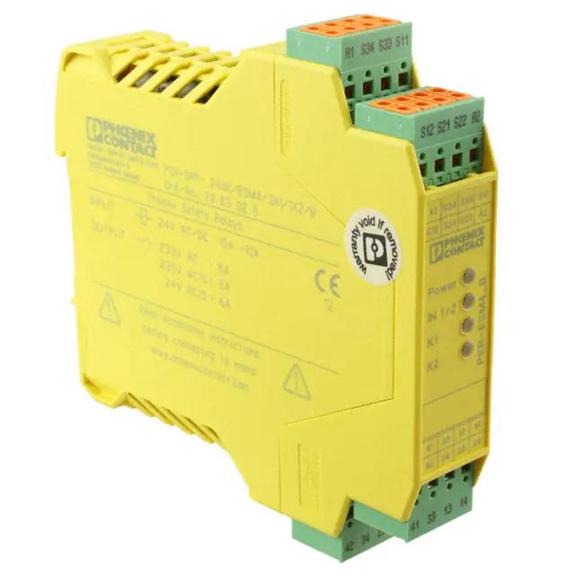 This is manufactured by Phoenix Contact. The manufacturer part number is 2963925. It is supplied with 2 channels. It is assigned with possible HTSUS value of 8536.49.0050. The product is rohs compliant. The coil voltage of the product is 24vac/dc. Moreover, it has spring terminal terminal style. The product has -20°c ~ 55°c operating temperature range. It has a coil current of 140 ma. The product's switching voltage is 250vac, 250vdc - max. It is shipped in bulk. It also has a 3pst-no (3 form a) contact form. Its typical moisture sensitivity level is 1 (unlimited). The operating time of the product is 20 ms. It has a long 6 weeks standard lead time. It has a contact current rating of 6 a. The product is available in din rail configuration. The product psr, is a highly preferred choice for users. While 45 ms is its release time. The product is designated with the ear99 code number The product is made from sturdy silver tin oxide (agsno), gold (au) materials.