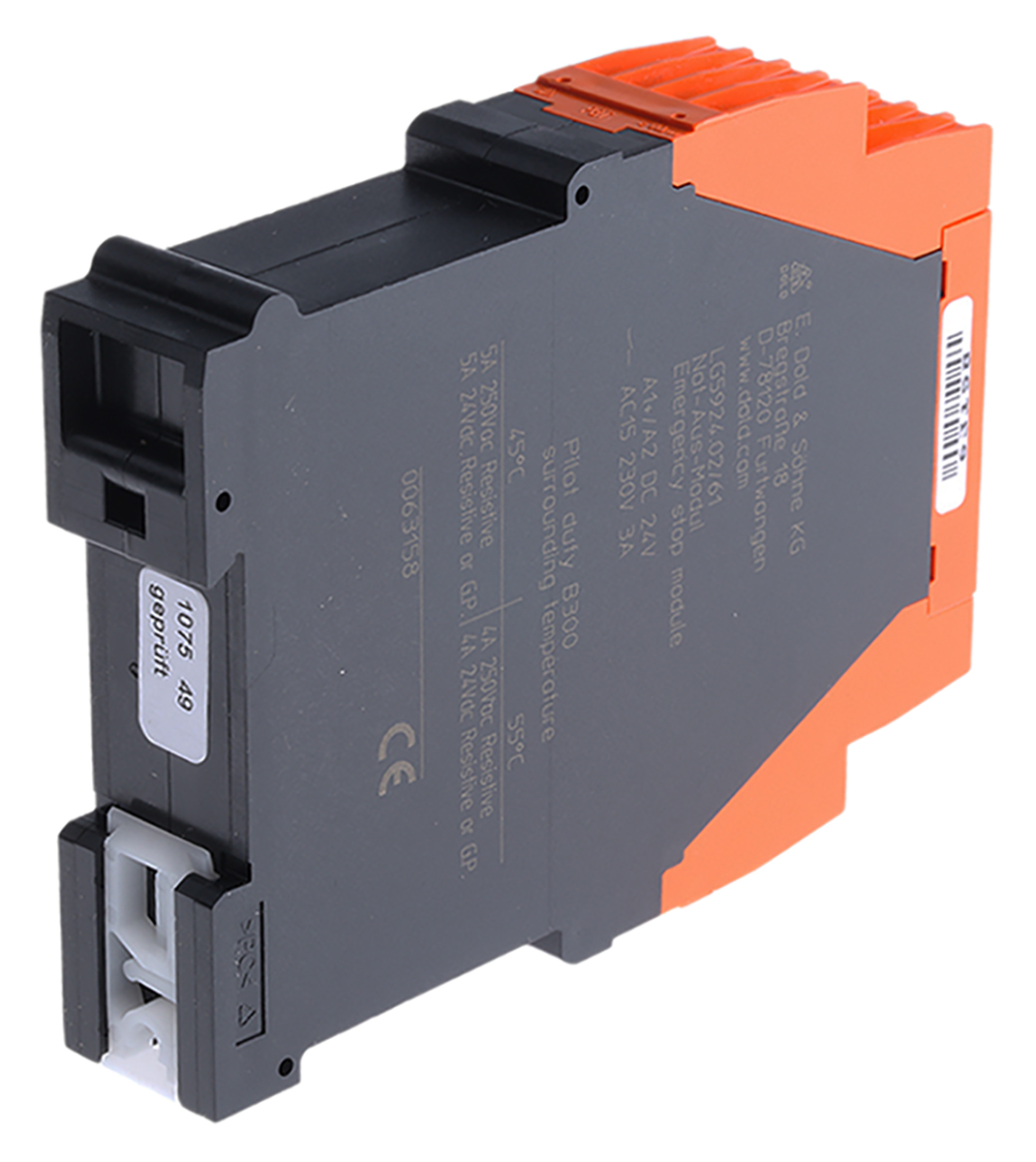 This is Safemaster LG5924 Safety Relay Single Channel 24 V ac/dc 2 Safety manufactured by Dold. The manufacturer part number is LG5924.02/61 DC24V. It performs basic function of emergency stop. The product lg5924, is a highly preferred choice for users. Its accurate length is 90mm. Furthermore, the product is 22.5mm wide. The product comes in 121mm depth. It is supplied with 1 channels.