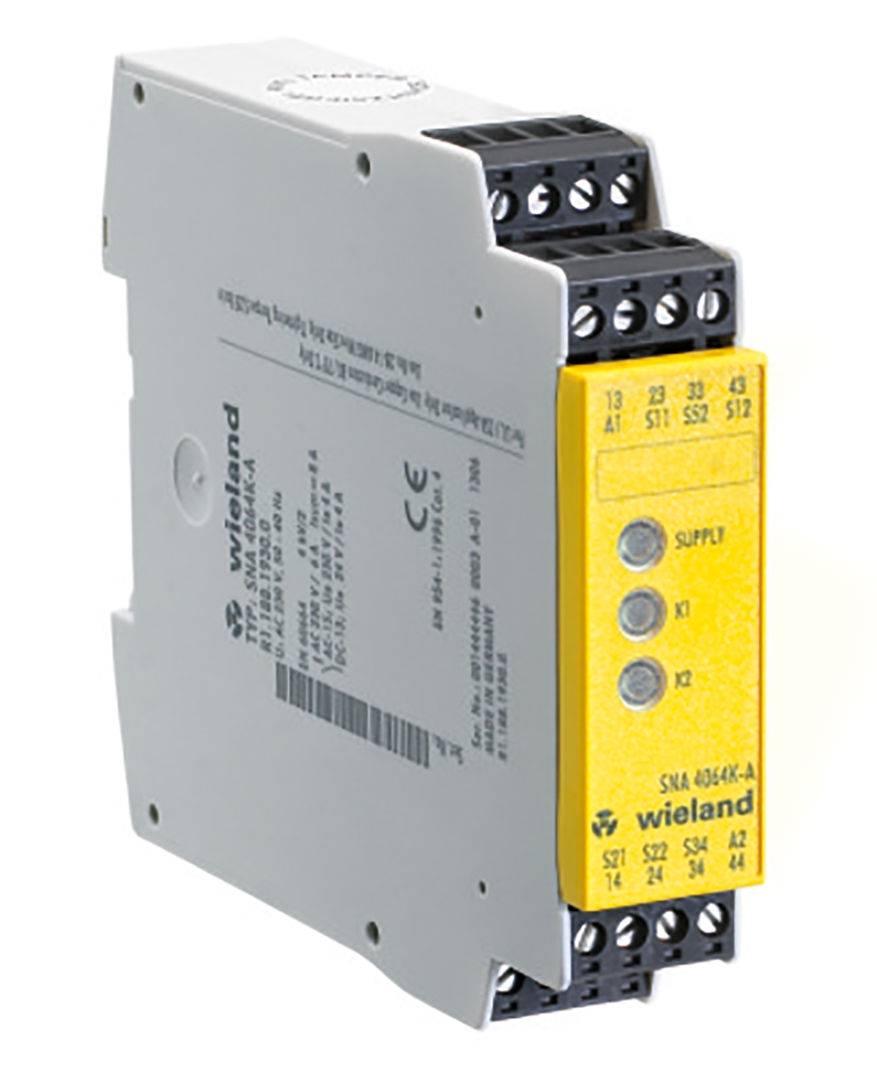 This is SNA 4043K 230 V ac Safety Relay Dual Channel with 3 Safety Contacts and 1 Auxilary Contact manufactured by Wieland. The manufacturer part number is R1.188.1840.0. It performs basic function of emergency stop, light beam/curtain, safety switch/interlock. The product sna 4043k, is a highly preferred choice for users. Its accurate length is 22.5mm. Furthermore, the product is 114mm wide. The product comes in 96.5mm depth. It is supplied with 2 channels. The terminal is a screw type.