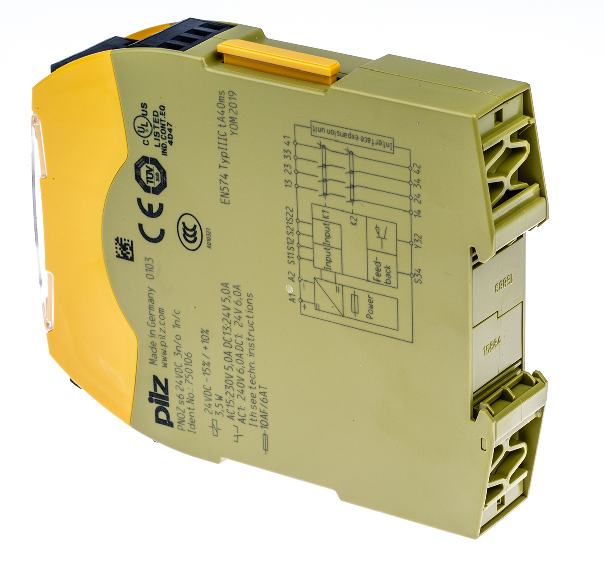 This is 24 V dc Safety Relay Dual Channel with 3 Safety Contacts and 1 Auxilary Contact Compatible With Two-Hand Control manufactured by Pilz. The manufacturer part number is 750106. It performs basic function of two hand control. The product pnoz s6, is a highly preferred choice for users. Its accurate length is 98mm. Furthermore, the product is 22.5mm wide. The product comes in 120mm depth. It is supplied with 2 channels. The terminal is a screw type.