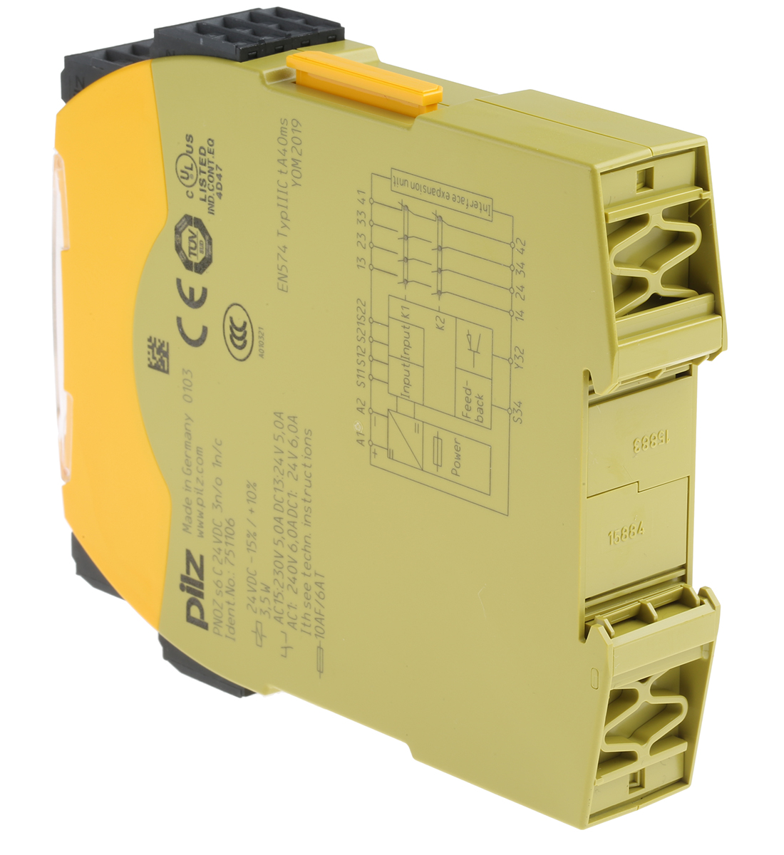 This is PNOZ s6 C 24VDC 3 n/o 1 n/c manufactured by Pilz. The manufacturer part number is 751106. It performs basic function of safety switch. Its accurate length is 98mm. Furthermore, the product is 22.5mm wide. The product comes in 120mm depth. It is supplied with 2 channels. The terminal is a screw type.