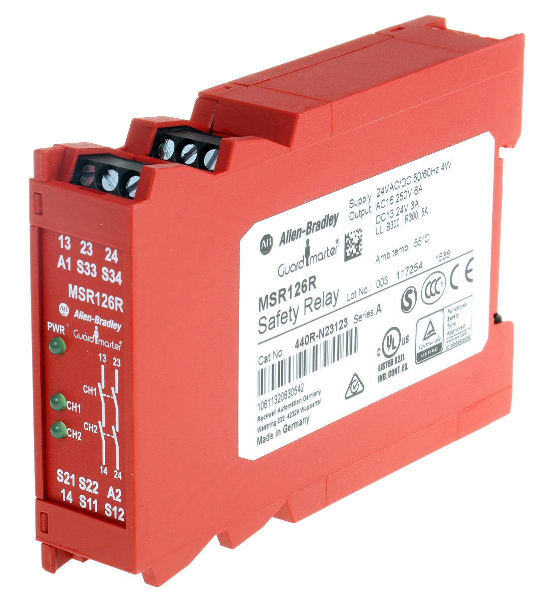 This is Minotaur 24 V ac/dc Safety Relay - Single Channel With 2 Safety Contacts Monitored Reset manufactured by Rockwell Automation. The manufacturer part number is 440R-N23123. It performs basic function of light beam/curtain, safety switch/interlock. The product msr126r, is a highly preferred choice for users. Its accurate length is 110mm. Furthermore, the product is 75mm wide. The product comes in 22.5mm depth. It is supplied with 1 channels.