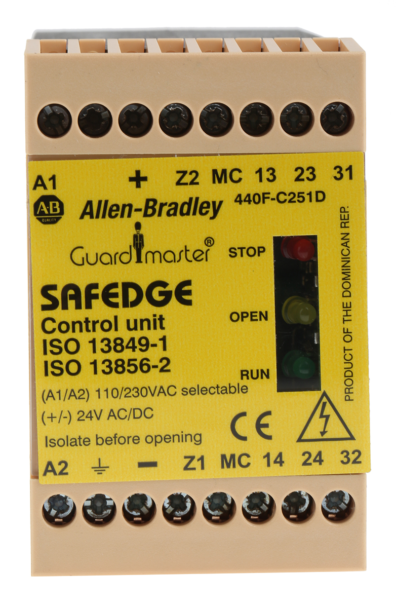 This is Safedge 24 V dc 110 → 230 V ac Safety Relay - Dual Channel With 2 Safety Contacts 1 manufactured by Rockwell Automation. The manufacturer part number is 440F-C251D. It performs basic function of safety mat/edge. The product 440-f, is a highly preferred choice for users. Its accurate length is 73mm. Furthermore, the product is 45.5mm wide. The product comes in 120mm depth. It is supplied with 2 channels.