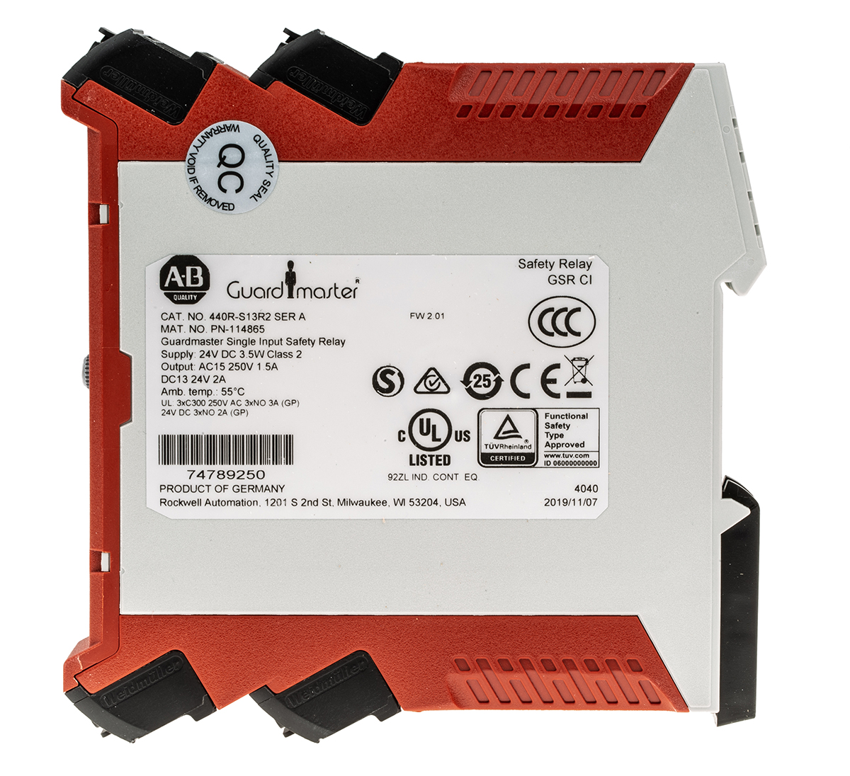 This is Guardmaster 24 V dc Safety Relay - Dual Channel With 3 Safety Contacts 1 Auxiliary Contact manufactured by Rockwell Automation. The manufacturer part number is 440R-S13R2. It performs basic function of light beam/curtain, safety mat/edge, safety switch/interlock. The product 440-r, is a highly preferred choice for users. Its accurate length is 114mm. Furthermore, the product is 22.5mm wide. The product comes in 119mm depth. It is supplied with 2 channels. The terminal is a screw type.