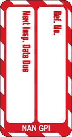 This is White on Red Nano Tag manufactured by Brady. The manufacturer part number is NAN-NAN-GPI-RD-20. It comes in inspection tag configuration.