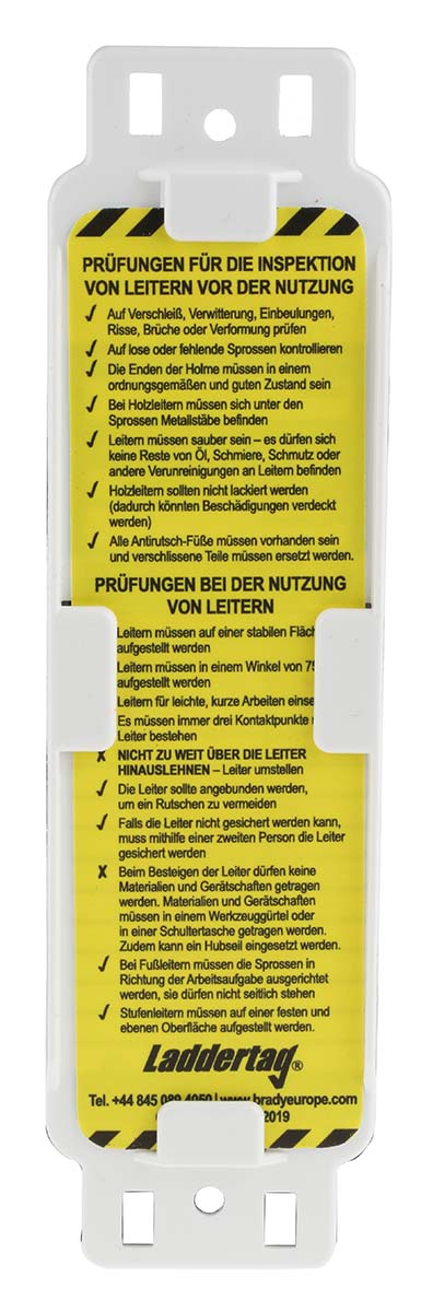 This is Ladder Tag Kit Contents 1 Pen 10 Laddertag Holders 10 Laddertag Inserts (German) manufactured by Brady. The manufacturer part number is LAD-DE-EITH-L12-A. It comes in ladder tag configuration.