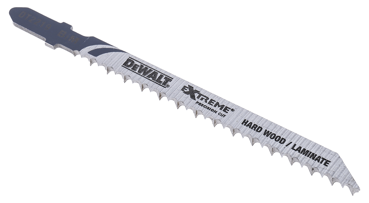 This is Dewalt 100 mm T-Shank bimetal Jigsaw Blade Set 75mm Cutting Length 2.5mm Tooth Pitch manufactured by DeWALT. The manufacturer part number is DT2219-QZ.