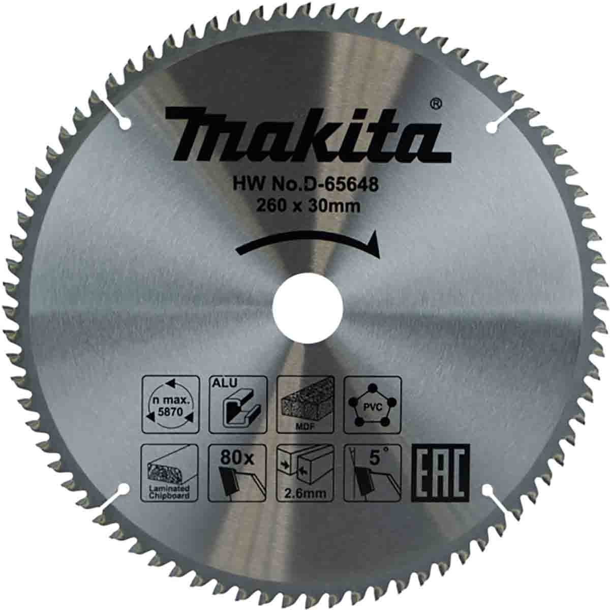 This is TCT SAW BLADE (MP) 260mmx80T manufactured by Makita. The manufacturer part number is D-65648.