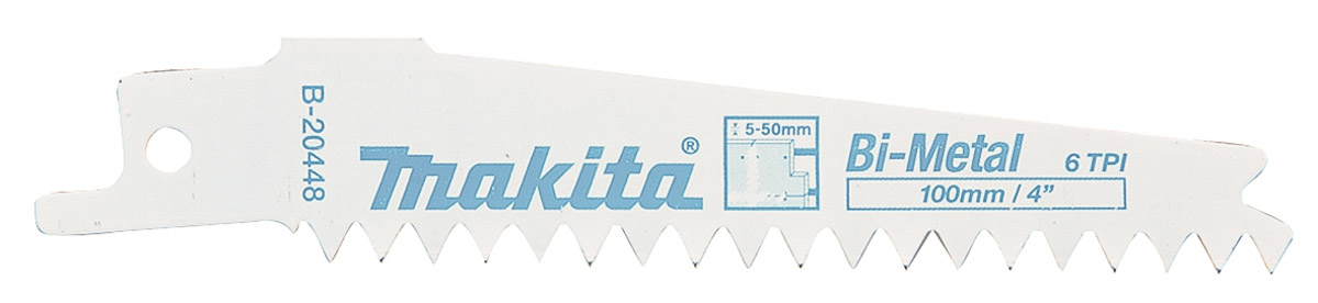 This is 100mm Cutting Length Bimetal Reciprocating Saw Blade 6 Teeth Per Inch Pack of 5 manufactured by Makita. The manufacturer part number is B-20448.