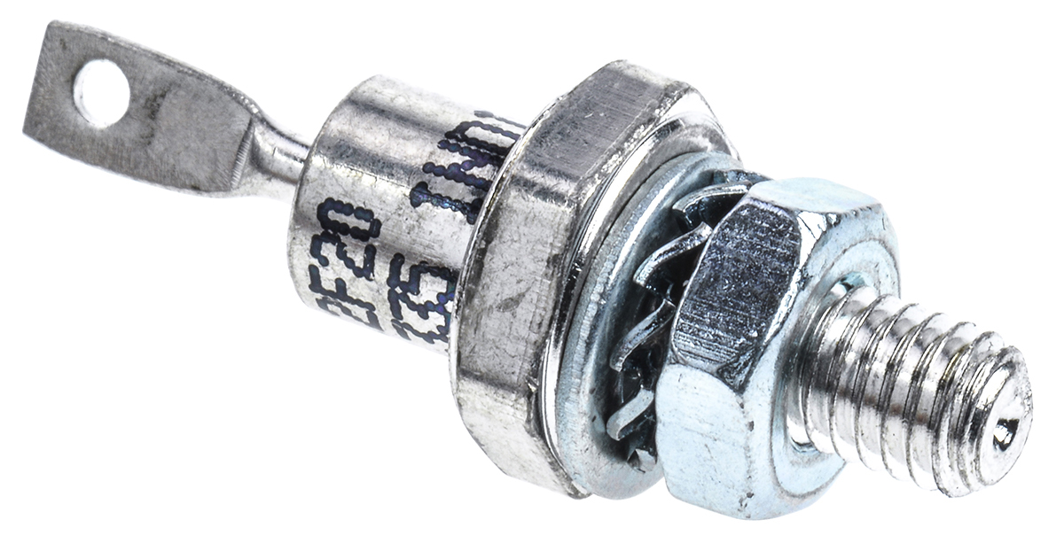 This is Thread Mount Diode Stud Cathode 200V 12A 2-Pin DO-4 manufactured by Vishay. The manufacturer part number is VS-12F20. The product is available in thread mount configuration. It is designed with a rectifier diode. The diode features a stud cathode configuration.