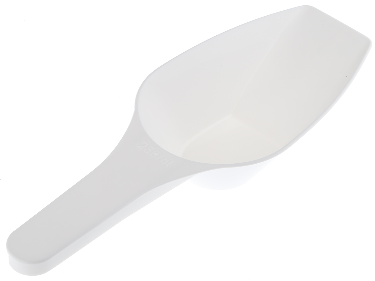 This is PP Measuring Scoop 250mL Capacity White manufactured by RS Pro. The manufacturer part number is 461-0746. The product is made from highly stable and reliable pp. The module has the capacity of 250ml.