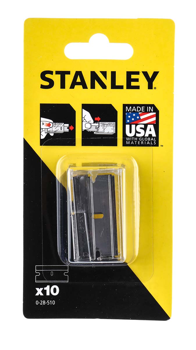 This is Razor Blade 10 piece Carbon Steel Material manufactured by Stanley. The manufacturer part number is 0-28-510. The product is made from highly stable and reliable carbon steel. It comes in replacement blades configuration.