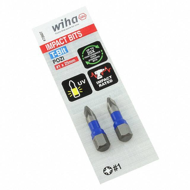 This is manufactured by Wiha. The manufacturer part number is 72607. This is basically a useful and handy bit, insert. It is assigned with possible HTSUS value of 8207.90.7585. It is shipped in box. The product is not applicable. The product has an integral 0.98" (25.0mm) overall length. Its typical moisture sensitivity level is not applicable. The product has a drive size of 1/4". The built-in exquisite tip is a pozidriv® tip. The product is designated with the ear99 code number