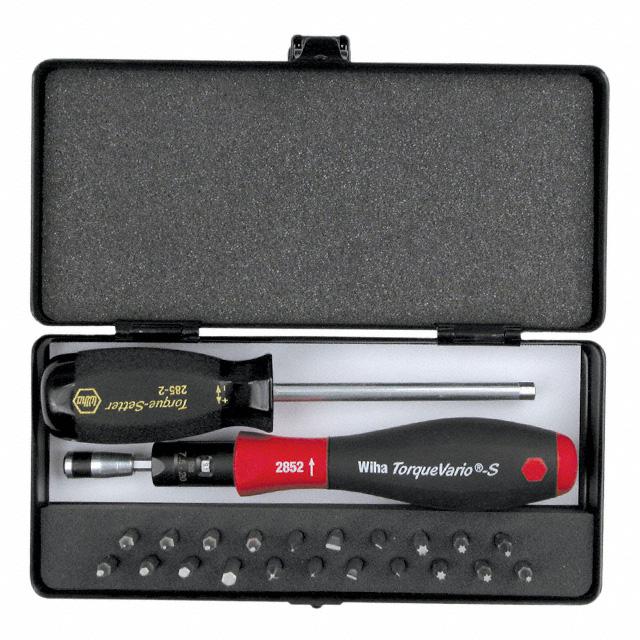 This is manufactured by Wiha. The manufacturer part number is 28593. The typical product's weight is 1.3 lbs (589.7 g). It is assigned with possible HTSUS value of 8205.40.0000. It is shipped in box. The product torquevario-s®, is a highly preferred choice for users. The product is not applicable. In addition, it is reach unaffected. Its typical moisture sensitivity level is not applicable. The product is also supplied with adjustment tool, bit holder, c of c, handle, metal case. The splendid features of the product include 15 ~ 80 in-oz (0.11 ~ 0.56nm) torque, ergonomic, esd safe. It has a long 2 weeks standard lead time. It comes in bit set configuration. The built-in exquisite tip is a hex, slotted, torx® tip. The product is designated with the ear99 code number