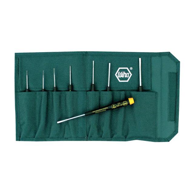 This is manufactured by Wiha. The manufacturer part number is 27290. The typical product's weight is 0.54 lb (244.94 g). It is assigned with possible HTSUS value of 8205.40.0000. It is shipped in box. The product is not applicable. In addition, it is reach unaffected. Its typical moisture sensitivity level is not applicable. The product is also supplied with canvas pouch. The splendid features of the product include chrome finish, esd safe, free turning cap, impact resistant. It comes in screwdriver set configuration. The built-in exquisite tip is a slotted tip. The product is designated with the ear99 code number