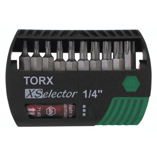 This is manufactured by Wiha. The manufacturer part number is 79445. The typical product's weight is 0.29 lb (131.54 g). It is assigned with possible HTSUS value of 8207.19.3090. It is shipped in bulk. The product xselector, is a highly preferred choice for users. The product is not applicable. In addition, it is reach unaffected. Its typical moisture sensitivity level is not applicable. The product is also supplied with plastic holder. The splendid features of the product include magnetic, quick release. It has a long 2 weeks standard lead time. It comes in bit set configuration. The built-in exquisite tip is a torx® tip. The product is designated with the ear99 code number