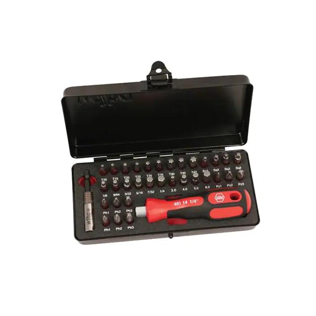 This is manufactured by Wiha. The manufacturer part number is 76899. The typical product's weight is 1 lb (453.59 g). It is assigned with possible HTSUS value of 8205.40.0000. It is shipped in bulk. The product terminator, is a highly preferred choice for users. The product is not applicable. In addition, it is reach unaffected. Its typical moisture sensitivity level is not applicable. The product is also supplied with bit holder, handle, metal case. The splendid features of the product include ergonomic, impact resistant, non-magnetic, soft grip. It has a long 2 weeks standard lead time. It comes in bit set configuration. The built-in exquisite tip is a hex, phillips, pozidriv®, square, torx® tip. The product is designated with the ear99 code number