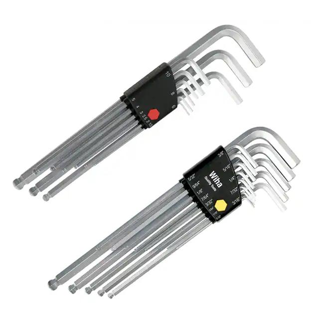 This is manufactured by Wiha. The manufacturer part number is 66993. The typical product's weight is 2 lbs (907.2 g). It is assigned with possible HTSUS value of 8204.11.0060. It is shipped in bulk. The product is not applicable. In addition, it is reach unaffected. Its typical moisture sensitivity level is not applicable. The product is also supplied with plastic holder. The splendid features of the product include ball end, chrome finish. It has a long 2 weeks standard lead time. It comes in hex key set configuration. The built-in exquisite tip is a hex tip. The product is designated with the ear99 code number
