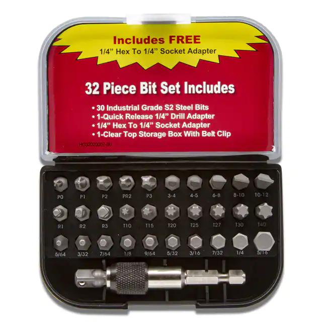 This is manufactured by Triplett. The manufacturer part number is TSBK-001. It is assigned with possible HTSUS value of 8205.40.0000. It is shipped in retail package. The product is rohs non-compliant. The product is also supplied with adapter, plastic case. Moreover, it corresponds to tsbk, a base product number of the product. The splendid features of the product include magnetic, quick release. It comes in bit set configuration. The built-in exquisite tip is a hex, phillips, spanner, torx® tip. The product is designated with the ear99 code number