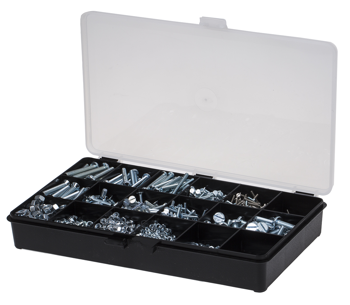 This is 3155 piece Steel Screw/Bolt Kit M2 M2.5 M3 M4 M5 M6 manufactured by RS Pro. The manufacturer part number is 849-423. A quality product with a nice bright zinc plated finish. The product features a slot drive. The product is made from highly stable and reliable steel. It has a typical thread size of m2, m2.5, m3, m4, m5, m6.