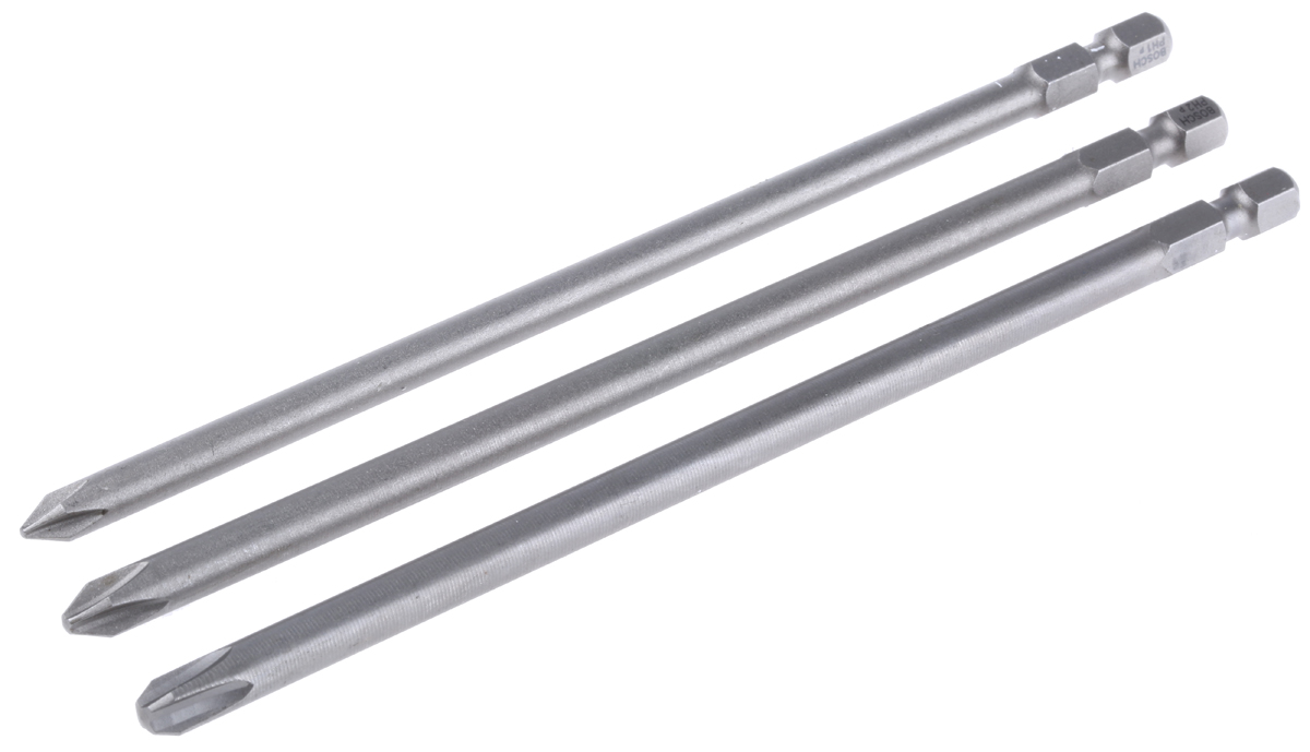 This is 3 pieces Driver Bit Phillips Driver Bit PH1 PH2 PH3 manufactured by Bosch. The manufacturer part number is 2607001758. It comes in driver bit configuration. The product is available in pz1, pz2, pz3 size.