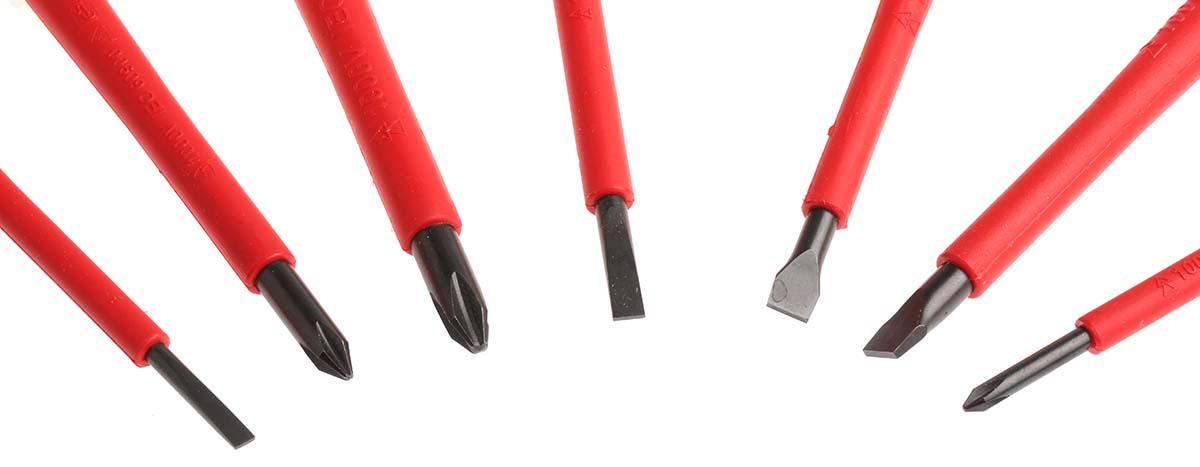 This is Screwdriver Set 7 Piece - Insulated Phillips Slotted manufactured by Bahco. The manufacturer part number is B220.007. The built-in exquisite tip is a phillips, slotted tip.