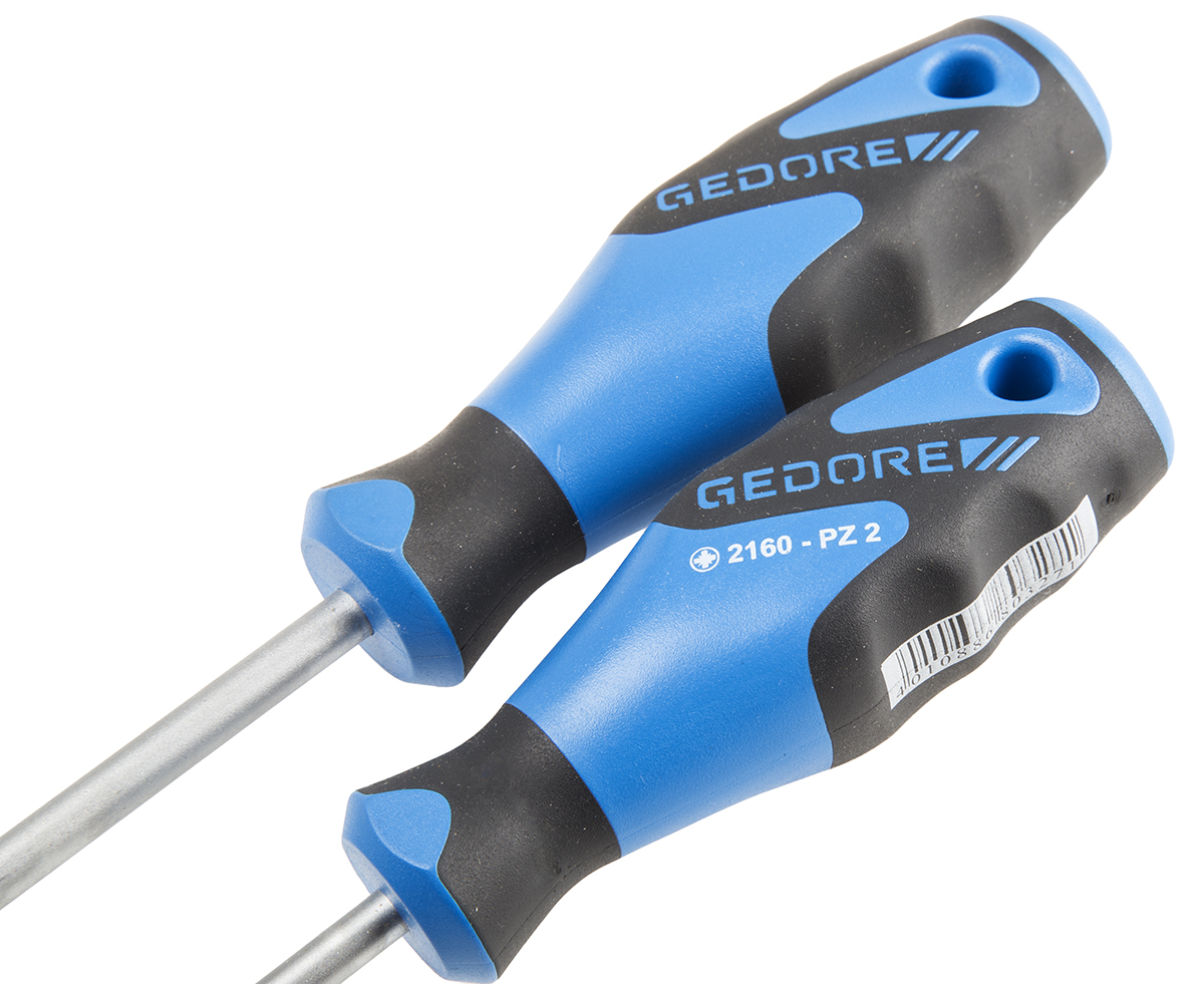 This is Screwdriver Set 6 Piece - Pozidriv Slotted manufactured by Gedore. The manufacturer part number is 2150-2160 PZ-06. The built-in exquisite tip is a pozidriv, slotted tip.