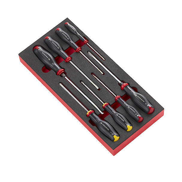 This is Slotted Screwdriver Set 8 Piece manufactured by Facom. The manufacturer part number is MODM.AT1PB. The built-in exquisite tip is a slotted tip.
