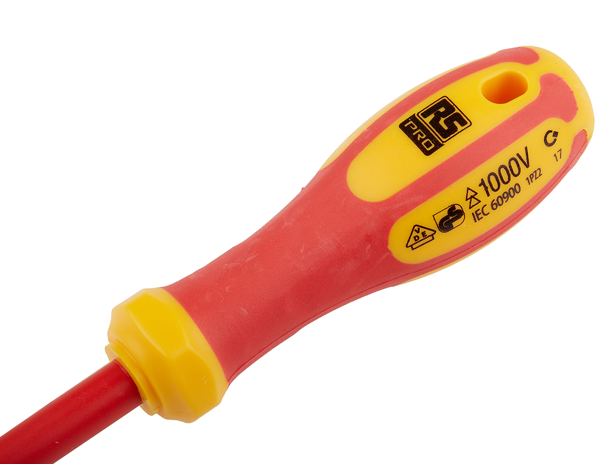 This is 100 mm Chrome Vanadium Molybdenum Steel Insulated Screwdriver Pozidriv PZ2 Tip Plastic manufactured by RS Pro. The manufacturer part number is 125-3087. The built-in exquisite tip is a pozidriv tip.