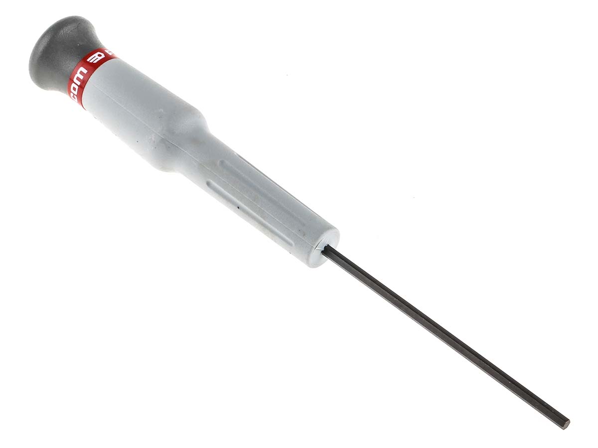 This is Hexagon ESD Screwdriver 2.5 mm Tip 75 mm manufactured by Facom. The manufacturer part number is 84E.2.5X75. The built-in exquisite tip is a hexagon tip.