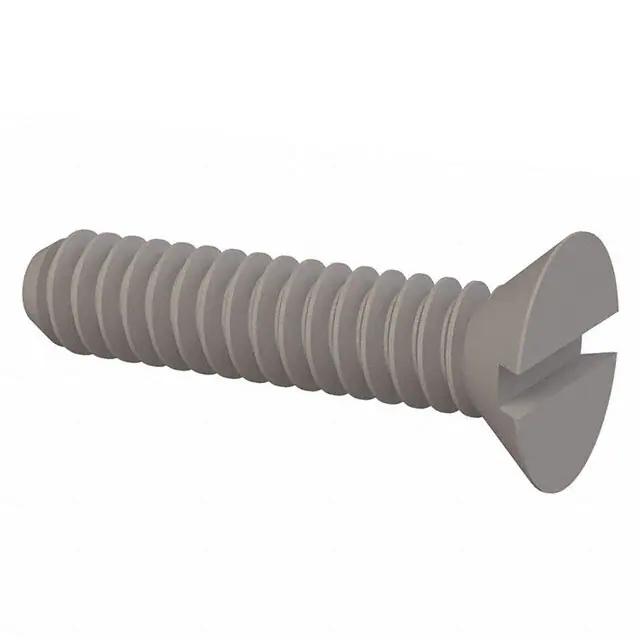 This is manufactured by Essentra Components. The manufacturer part number is 020632A062. It is assigned with possible HTSUS value of 3926.90.9985. It is shipped in bulk. The product microplastics, is a highly preferred choice for users. The product features a slotted drive. The product is made from highly stable and reliable nylon. The product has an integral 0.625" (15.88mm) 5/8" overall length. Its typical moisture sensitivity level is not applicable. It has a typical thread size of #6-32. The head is a 0.083" (2.11mm) high. It is a durable screw with a flat head. It has a long 8 weeks standard lead time. It comes in machine screw configuration. The product is designated with the ear99 code number