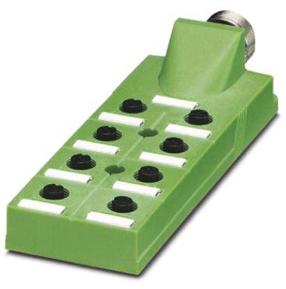 This is manufactured by Phoenix Contact. The manufacturer part number is 1692695. The product sacb, is a highly preferred choice for users. The product also features robust pbt housing material. This product features 6 number of ports. The product is rohs compliant. The splendid features of the product include 6 connector opening, dust tight, waterproof. It is assigned with possible HTSUS value of 8537.10.9120. It is shipped in bulk. It has a classic green colour. The product pluscon, is a highly preferred choice for users. The product is made from highly stable and reliable polyamide. It is a type of actuator box accessory. Its typical moisture sensitivity level is 1 (unlimited). The insert's size is m12, m23. The product is suitable for use with circular connectors. The product is designated with the ear99 code number