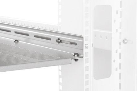 This is Grey Ventilated Shelf 1U x 556mm x 483mm 50kg max manufactured by APW. The manufacturer part number is 806-3634603. The product is made from highly stable and reliable steel. Furthermore, the product is 483mm wide. The product comes in 556mm depth. It comes in fixed shelf configuration.