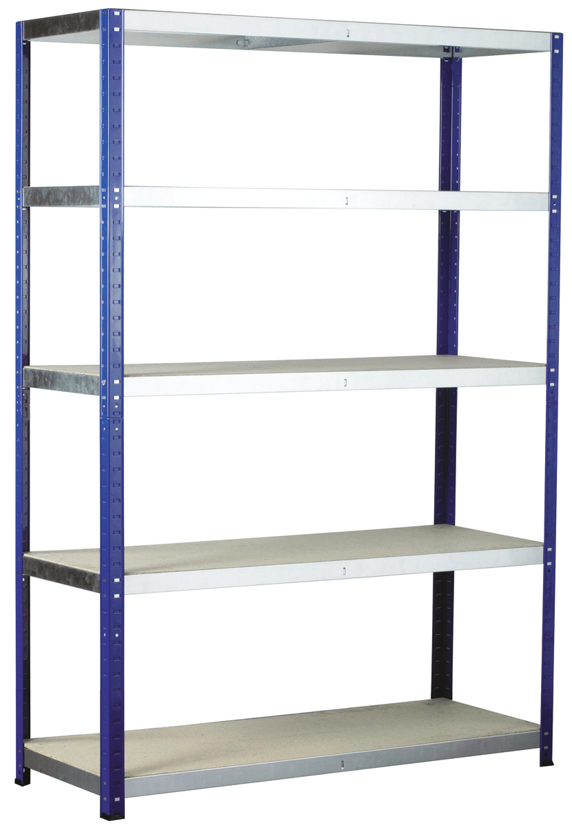 This is Blue 5 Shelf Chipboard Galvanised Steel Eco-Rax Free Standing Shelves 1800mm x 900mm x 600mm 265kg Load manufactured by RS Pro. The manufacturer part number is 813-3228. The product is made from highly stable and reliable chipboard, galvanised steel. In addition, the height is 1800mm. Furthermore, the product is 900mm wide. The product comes in 600mm depth.