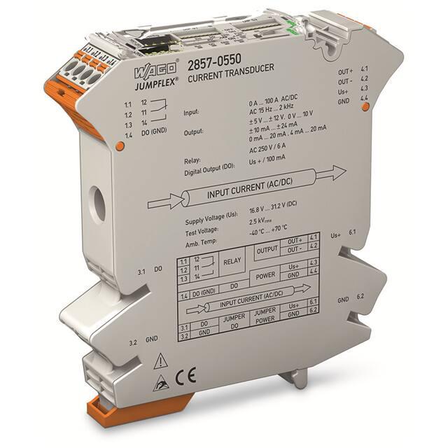 This is manufactured by WAGO Corporation. The manufacturer part number is 2857-550. The product is rohs3 compliant. Moreover, it has spring terminal terminal style. The product has -40°c ~ 70°c operating temperature range. It carries current input type. It comes in signal conditioner configuration. Furthermore, it has acurrent, voltage output. It is shipped in bag. Features a 3000v (test) isolation. Its typical moisture sensitivity level is not applicable. It has a long 12 weeks standard lead time. The product is available in din rail configuration. The product 2857, is a highly preferred choice for users. It has optimum voltage supply of 24vdc.