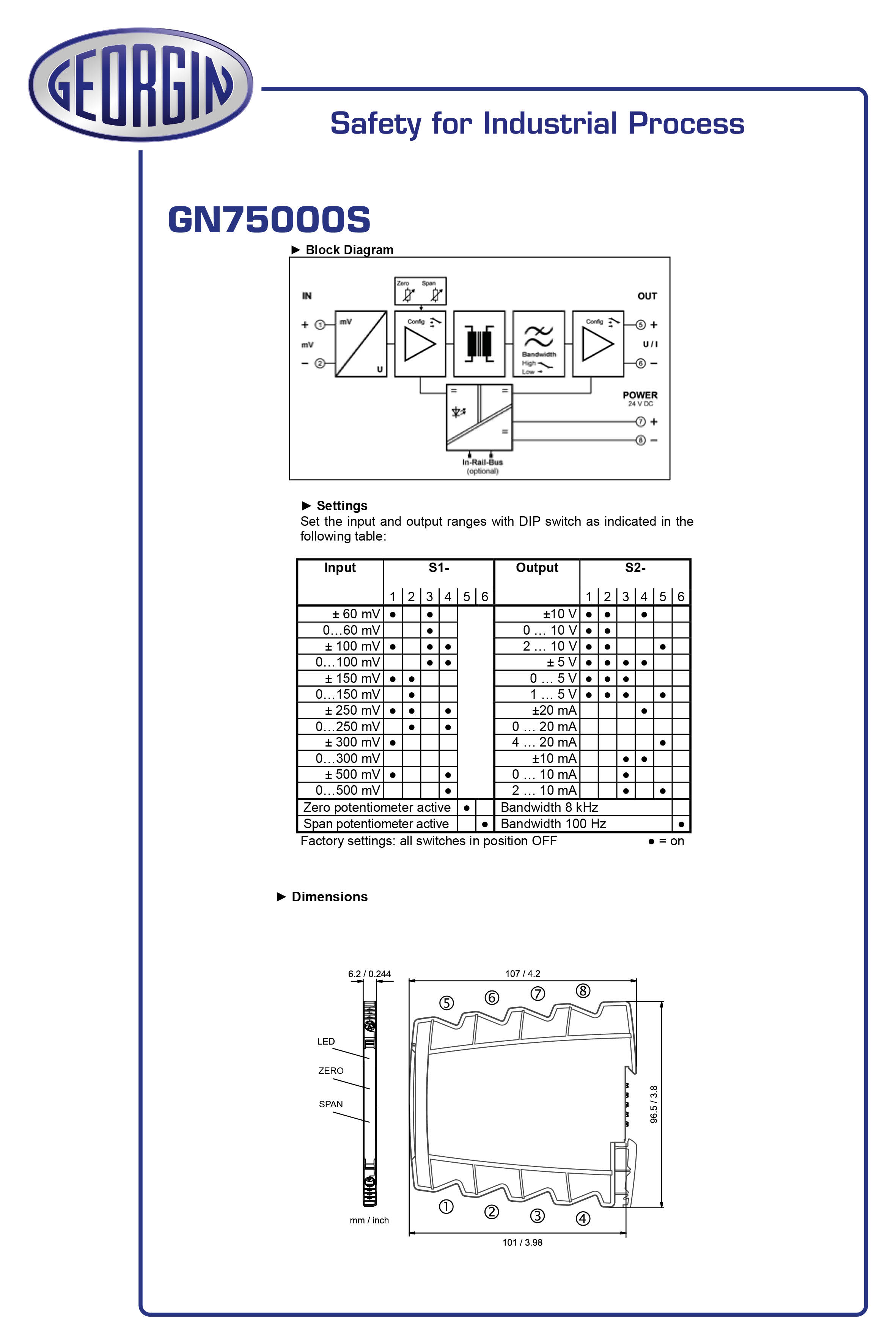 This is GS 75000 Series manufactured by GEORGIN. The manufacturer part number is GS75000S. Typical input range of 0.1 v, 0 → 0.06v. The product gs 75000, is a highly preferred choice for users.
