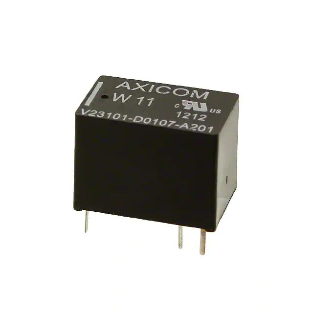 This is manufactured by TE Connectivity Potter & Brumfield Relays. The manufacturer part number is V23101D 107A201. It is assigned with possible HTSUS value of 8536.41.0020. The product is rohs compliant. The coil voltage of the product is 24vdc. Moreover, it has pc pin terminal style. The product has -40°c ~ 85°c operating temperature range. It holds up to 2.8 kohms coil resistance. It has a coil current of 8.6 ma. The coil is a non latching type. The product's switching voltage is 125vac, 120vdc - max. On the other hand, 18 vdc is the given crucial/must operating voltage. This is basically a general purpose. It is shipped in tube. It also has a spdt (1 form c) contact form. Its typical moisture sensitivity level is 1 (unlimited). The operating time of the product is 7 ms. While the must release voltage is a 2.4 vdc. It has a long 20 weeks standard lead time. It has a contact current rating of 1.25 a. The product is available in through hole configuration. The product v23101, axicom, is a highly preferred choice for users. While 5 ms is its release time. The product is made from sturdy silver palladium (agpd), gold (au) materials. Moreover, it corresponds to v23101, a base product number of the product. The product is designated with the ear99 code number