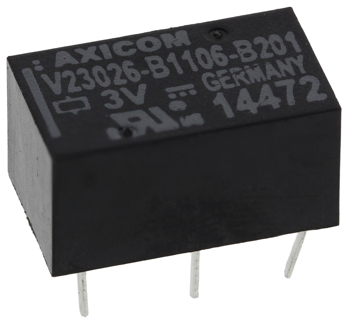 This is SPDT PCB Mount Latching Relay 1 A 3V dc manufactured by TE Connectivity. The manufacturer part number is V23026B1106B201. The given dimensions of the product include 13 x 6.9 x 7.6mm. The coil voltage of the product is 3v dc. The terminal is a through hole type. It holds up to 137ω coil resistance. Robust coil power of 66mw. It has a maximum operating temperature of +85°c. The product comes in 7.6mm depth. The product is available in pcb mount configuration. Its accurate length is 13mm. In addition, the height is 6.9mm. Whereas, the minimum operating temperature of the product is -40°c. It has equipped with 1 poles. The product is made from sturdy gold clad, rhodium plated palladium nickel materials.