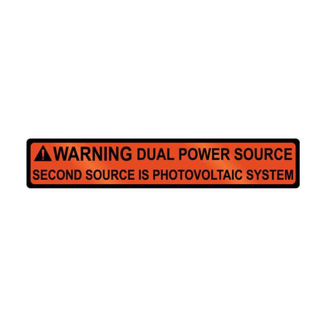 This is manufactured by HellermannTyton. The manufacturer part number is 596-00833. Label with a size of 4.00" l x 0.75" w (101.6mm x 19.1mm). It is assigned with possible HTSUS value of 8310.00.0000. It is shipped in bulk. It has a classic black legend, orange background colour. The product is made from highly stable and reliable aluminum. Its typical moisture sensitivity level is not applicable. A bespoke label is a warning. dual power source. second source is photovoltaic system label. The product is suitable for use with warning. It has a long 4 weeks standard lead time. Moreover, it corresponds to 596-00, a base product number of the product. The product is designated with the ear99 code number