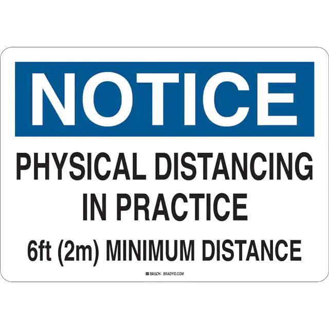This is manufactured by Brady Corporation. The manufacturer part number is 170262. Label with a size of 10.00" l x 7.00" w (254.0mm x 177.8mm). The product is not applicable. It is assigned with possible HTSUS value of 3926.90.9985. It is shipped in bulk. It has a classic black legend, white background colour. The product b-302, is a highly preferred choice for users. The product is made from highly stable and reliable polyester. Its typical moisture sensitivity level is not applicable. A bespoke label is a notice. physical distancing in practice. 6ft (2m) minimum distance. label. The product is suitable for use with notice. The product is designated with the ear99 code number