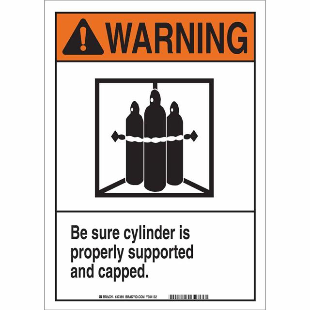 This is manufactured by Brady Corporation. The manufacturer part number is 37389. Label with a size of 14.00" l x 10.00" w (355.6mm x 254.0mm). The product is rohs3 compliant. It is assigned with possible HTSUS value of 3926.90.9985. It is shipped in bulk. It has a classic black and orange legend, white background colour. The product brady®, is a highly preferred choice for users. The product is made from highly stable and reliable polyester. In addition, it is reach unaffected. Its typical moisture sensitivity level is not applicable. A bespoke label is a warning. be sure cylinder is properly supported and capped label. The product is suitable for use with warning. It has a long 4 weeks standard lead time. The product is designated with the ear99 code number