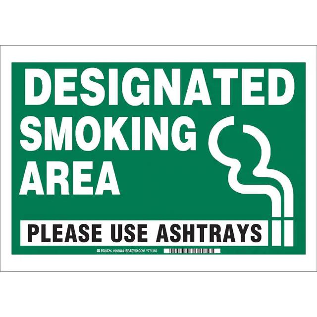 This is manufactured by Brady Corporation. The manufacturer part number is 103844. Label with a size of 14.00" l x 10.00" w (355.6mm x 254.0mm). The product is rohs3 compliant. It is assigned with possible HTSUS value of 3926.90.9985. It is shipped in bulk. It has a classic black and green legend, white background colour. The product brady®, is a highly preferred choice for users. The product is made from highly stable and reliable polyester. In addition, it is reach unaffected. Its typical moisture sensitivity level is not applicable. A bespoke label is a designated smoking area please use ashtrays label. The product is suitable for use with notice. It has a long 4 weeks standard lead time. The product is designated with the ear99 code number