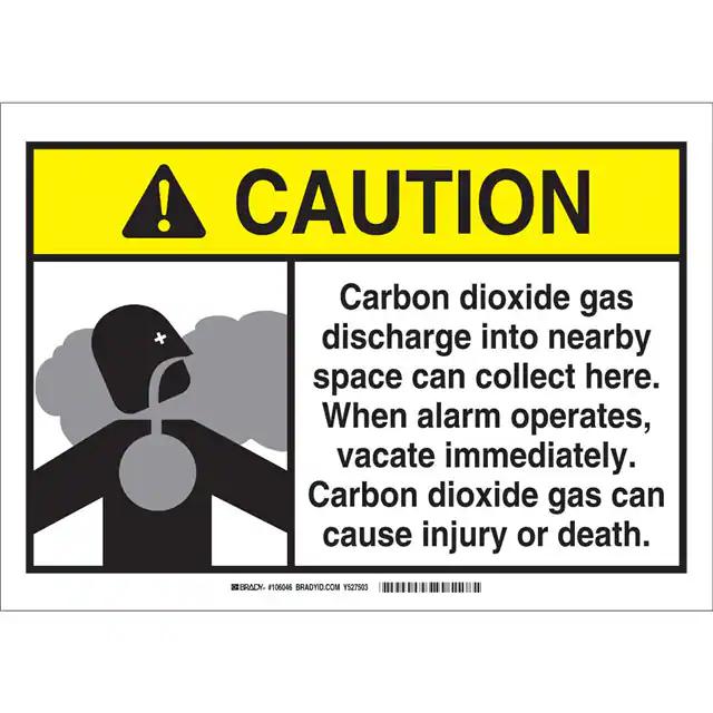 This is manufactured by Brady Corporation. The manufacturer part number is 106045. Label with a size of 10.00" l x 7.00" w (254.0mm x 177.8mm). The product is rohs3 compliant. It is assigned with possible HTSUS value of 3926.90.9985. It is shipped in bulk. It has a classic black, gray and yellow legend, white background colour. The product brady®, is a highly preferred choice for users. The product is made from highly stable and reliable fiberglass. In addition, it is reach unaffected. Its typical moisture sensitivity level is not applicable. A bespoke label is a caution. carbon dioxide gas discharge into nearby space can collect here. when alarm operates, vacate immediately. carbon diox… label. The product is suitable for use with caution. It has a long 4 weeks standard lead time. The product is designated with the ear99 code number