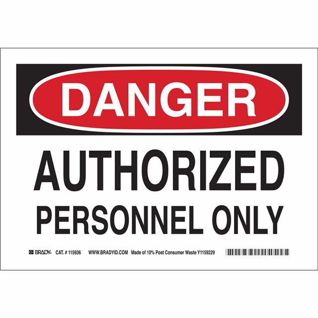 This is manufactured by Brady Corporation. The manufacturer part number is 116101. Label with a size of 14.00" l x 10.00" w (355.6mm x 254.0mm). The product is not applicable. It is assigned with possible HTSUS value of 3926.90.9985. It is shipped in bulk. It has a classic black and red legend, white background colour. The product brady®, is a highly preferred choice for users. The product is made from highly stable and reliable polypropylene. In addition, it is reach unaffected. Its typical moisture sensitivity level is not applicable. A bespoke label is a danger. authorized personnel only label. It has a long 4 weeks standard lead time. The product is designated with the ear99 code number