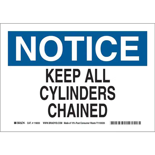 This is manufactured by Brady Corporation. The manufacturer part number is 116197. Label with a size of 10.00" l x 7.00" w (254.0mm x 177.8mm). The product is not applicable. It is assigned with possible HTSUS value of 3926.90.9985. It is shipped in bulk. It has a classic black and blue legend, white background colour. The product brady®, is a highly preferred choice for users. The product is made from highly stable and reliable polypropylene. In addition, it is reach unaffected. Its typical moisture sensitivity level is not applicable. A bespoke label is a notice. keep all cylinders chained label. It has a long 4 weeks standard lead time. The product is designated with the ear99 code number