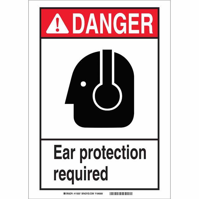 This is manufactured by Brady Corporation. The manufacturer part number is 119387. Label with a size of 10.00" l x 7.00" w (254.0mm x 177.8mm). The product is rohs3 compliant. It is assigned with possible HTSUS value of 3926.90.9985. It is shipped in bulk. It has a classic black and red legend, white background colour. The product brady®, is a highly preferred choice for users. The product is made from highly stable and reliable polyester. In addition, it is reach unaffected. Its typical moisture sensitivity level is not applicable. A bespoke label is a danger. ear protection required label. The product is suitable for use with danger. It has a long 4 weeks standard lead time. The product is designated with the ear99 code number
