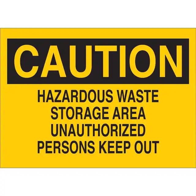 This is manufactured by Brady Corporation. The manufacturer part number is 122842. Label with a size of 10.00" l x 7.00" w (254.0mm x 177.8mm). The product is rohs3 compliant. It is assigned with possible HTSUS value of 3926.90.9985. It is shipped in bulk. It has a classic black legend, yellow background colour. The product brady®, is a highly preferred choice for users. The product is made from highly stable and reliable fiberglass. In addition, it is reach unaffected. Its typical moisture sensitivity level is not applicable. A bespoke label is a caution. hazardous waste storage area unauthorized persons keep out label. The product is suitable for use with warning. It has a long 4 weeks standard lead time. The product is designated with the ear99 code number