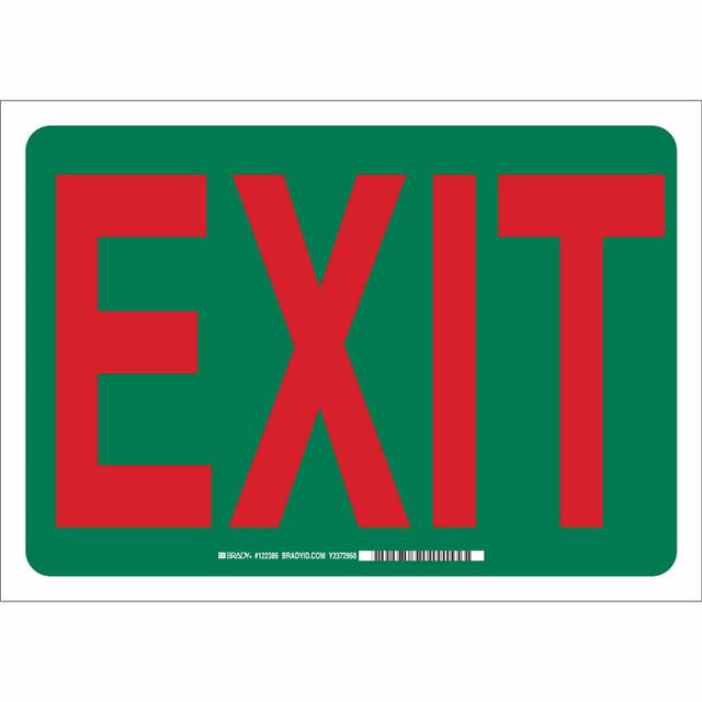This is manufactured by Brady Corporation. The manufacturer part number is 122908. Label with a size of 10.00" l x 7.00" w (254.0mm x 177.8mm). The product is rohs3 compliant. It is assigned with possible HTSUS value of 3926.90.9985. It is shipped in bulk. It has a classic red legend, green background colour. The product brady®, is a highly preferred choice for users. The product is made from highly stable and reliable fiberglass. In addition, it is reach unaffected. Its typical moisture sensitivity level is not applicable. A bespoke label is a exit label. The product is suitable for use with notice. It has a long 4 weeks standard lead time. The product is designated with the ear99 code number