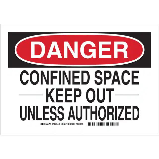 This is manufactured by Brady Corporation. The manufacturer part number is 123651. Label with a size of 14.00" l x 10.00" w (355.6mm x 254.0mm). The product is rohs3 compliant. It is assigned with possible HTSUS value of 3926.90.9985. It is shipped in bulk. It has a classic black and red legend, white background colour. The product brady®, is a highly preferred choice for users. The product is made from highly stable and reliable polyester. In addition, it is reach unaffected. Its typical moisture sensitivity level is not applicable. A bespoke label is a danger. confined space -----keep out----- unless authorized label. The product is suitable for use with danger. It has a long 4 weeks standard lead time. The product is designated with the ear99 code number